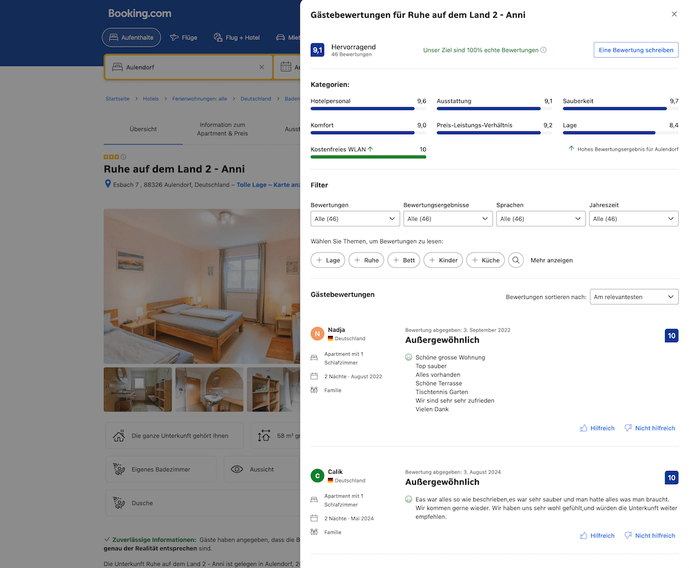 Booking.com zeigt nur die Bewertungen er letzten 2 Jahre an. Ältere Bewertungen werden gelöscht.